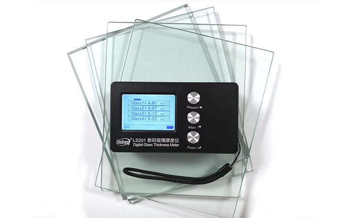 將LS201數碼玻璃厚度儀緊貼夾膠玻璃一側,按下測量鍵就能顯示夾膠玻璃總的厚度,或者顯示兩層玻璃的厚度(兩層玻璃厚度相加就是總的厚度)。
