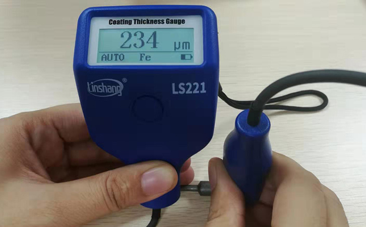 LS221鍍層測厚儀的探頭的尺寸是71*26*22 mm下面我們就來演示一下儀器測小物件材料:
