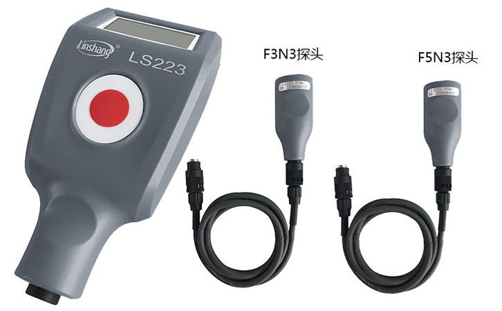 鍍層測(cè)厚儀LS223,因?yàn)椴捎玫氖侵鳈C(jī)與探頭分離式的設(shè)計(jì),所以在購(gòu)買(mǎi)時(shí)有兩個(gè)不同量程的探頭可以選擇。F5N3的探頭,大量程最厚可以測(cè)到5mm,F(xiàn)3N3的探頭,最厚可以測(cè)到3mm。
