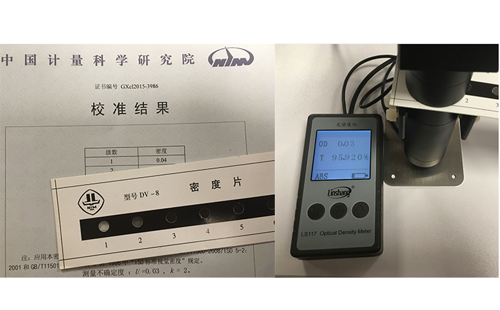 光密度儀LS117,測(cè)量光密度的范圍最大能測(cè)到6.00 OD。這比美國(guó)X-Rite愛色麗的光密度儀341量程還要大,愛色麗也只能測(cè)到5.00 OD。而且操作也更簡(jiǎn)單。至于準(zhǔn)確性,特地拿來(lái)了中國(guó)計(jì)量院已經(jīng)檢測(cè)過(guò)密度值的光密度片,用LS117來(lái)測(cè)量,對(duì)比數(shù)據(jù)是非常接近的。