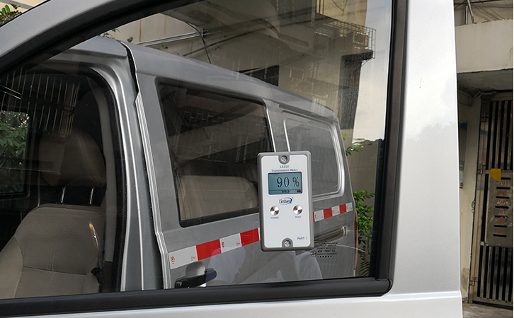 在這次“亮窗行動”中, 交警人員會通過透光計來檢測車窗貼膜后的透光率,用無線分體的透光率計LS110能準確測量出車窗的透光率。