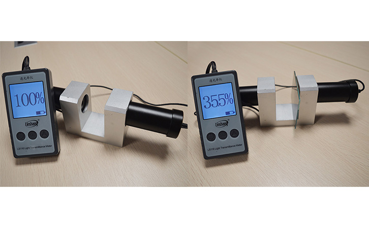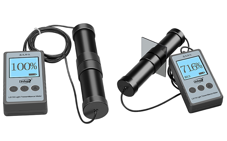 LS116透光率計(jì)主要用于規(guī)則透射材料的透光率檢測,如平面透明材料,有機(jī)材料,鍍膜材料,玻璃等。透光率計(jì)的單位為百分比,透過率光強(qiáng)與入射光強(qiáng)的比值即為透光率。
